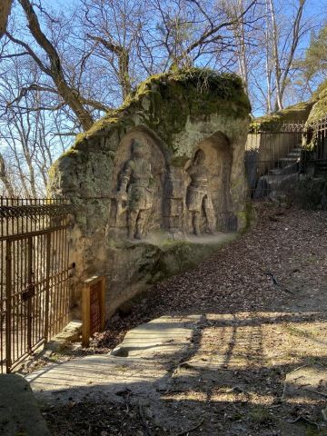 Konečně jsme tady, koukají na nás obří čertovy hlavy. Jsme na přímém sluníčku. To je ale horko! Říkám si o první občerstvení - ještě, že mi panička vzala skládací misku a vodu. Už tady nejsme sami. Kolem běhá spousta dalších dětí. Musíme si počkat, abychom se také mohli vyfotit před těmi zvláštními čerty. Prý tady jsou už téměř 180 let a vytesal je sochař Václav Levý.