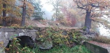 Seběhneme dolů na cestu k Hrázskému rybníku vedoucí lesem, který v létě příjemně chladí. Pocítit lze i jemnou vrstevnici - ale to spíše dvounožci, já jsem moc spokojená. Na konci lesa dojdeme k ikonickému kamennému mostku, který si rád každý fotí.