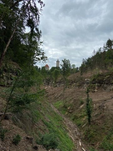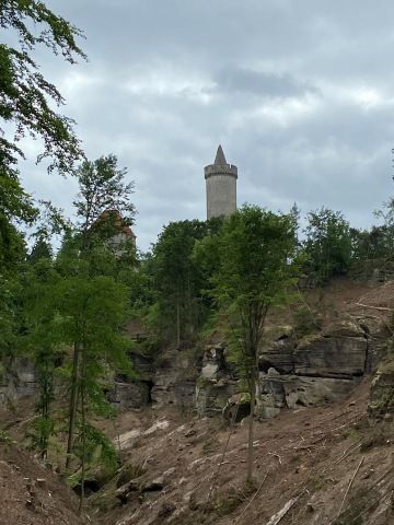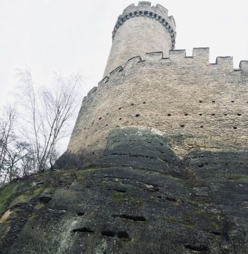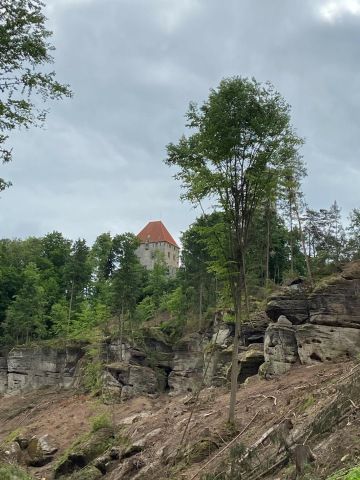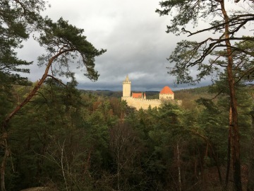 Návštěvu hradu Kokořín nevynechejte, od parkoviště je to cca 15-20 min do kopce. Můžete ji zařadit na začátek výletu – a pak se vrátit zpět na parkoviště stejnou cestou – popř. si ji nechat až na konec výletu. Do hradu samotného nás pejsky nepustí, ale dá se vejít přes most do vnitřního nádvoří hradu – tady být můžeme. Jen dejte pozor, abyste stihli otevírací dobu, pak se brána na nádvoří zavře a můžete si prohlédnout hrad jen zvenku. Ale i to stojí za to.