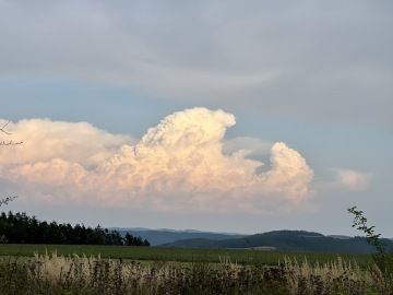 U auta se s námi obloha rozloučila v oblaku, který připomínal měsíc a taky to, že už se blíží večer a je čas někde zakotvit.