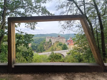 - Pro kočárky je potřeba uvažovat více nad trasou, cestou je totiž několik dlouhých schodišť, které by se měli dál objet sjízdnou cestou až k hradu. Na vyhlídky a stezku Třešňovka ale kočárkem nevyjedete.