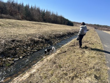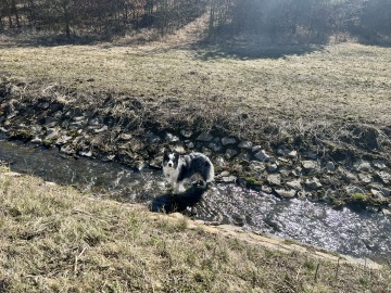 Potom jsme vyrazili prozkoumat druhou stranu jezera. A tehdy to právě začalo…. Lidé a hlavně ostatní psí chlupáči se začali objevovat více a více a nedalo se jim někdy ani vyhnout. To já jako pes, kterého napadl a pokousal jiný pes nemám rád a bojím se. Ale když byl se mnou Tonda, tak jsem se nemusel bát tolik, protože on je jako můj osobní strážce, a když se ke mně někdo chce přiblížit, tak ho nepustí a já mohu v klidu odejít.