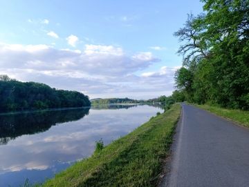Vrátili jsme se zpět k autu, vzali potřebné cestovní vybavení, jako je třeba cestovní láhev a hurá na trasu. Ta nás vedla chvíli podél silnice, až jsme došli do vesnice. V té jsme se propletli uličkami přímo k řece. Kolem řeky vede cyklostezka, takže jsme museli být na vodítku a pod dohledem. Cesta je velmi jednoduchá i pro starší pejsky jako jsem já Seth. Jde se totiž stále po rovině kolem Labe, do kterého jsem průběžně skákal, abych se ochladil. Na stezce jsme po půl hodině cesty míjeli bufet, kde je možné se občerstvit. Nestavěli jsme, měli jsme v batohu totiž masíčka. Po další půl hodině rovné asfaltové cesty jsme přišli k podchodu a odbočili jsme doleva ze stezky pryč.