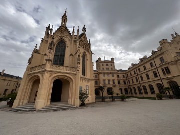 Zámek je opravdu krásná novogotická stavba, která se nám nikdy neokouká. Areál je velký, a když jsme si pročmuchali okolí zámku, namířili jsme si to přímo k minaretu.