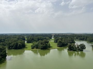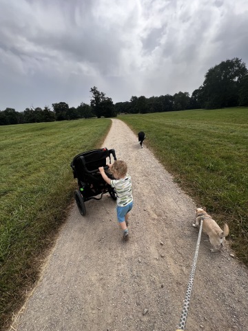 Byli jsme stále plní energie i když Thorinek se chvíli vezl v kočáru s Máťou, protože má maličké nožičky. Matýsek měl stále půlnoc, a tak jsme se vydali od zámku k Apollonovu chrámu, po cestě na chrám jsme si prohlídli Amfiteátr a procházeli jsme okolo vyhlídkové věže, kam už tedy panička nešla. Kousek za věží jsme se ochladili v Mlýnském rybníku a pokračovali dál.