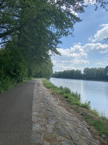 - Pěší trasa buď po asfaltové cestě, nebo po trávě kolem vody.
