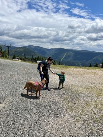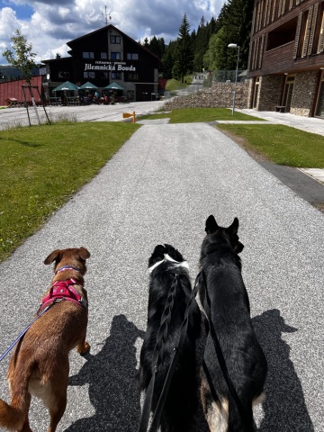 Když se páníčci občerstvili, my jsme dostali také svačinku a vodu. Potom už jsme vyrazili dál na Medvědí stezku.