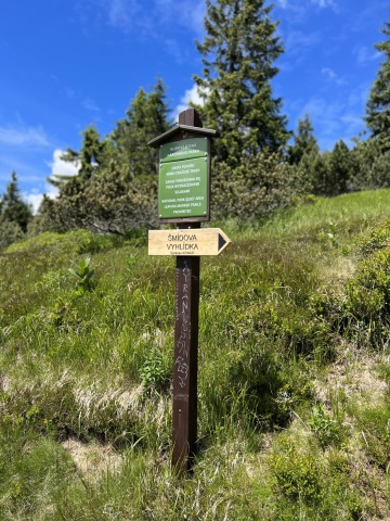 Na Šmídově vyhlídce je krásné sezení, kde se naskytne výhled na hřeben Krkonoš od Vysokého kola až po Sněžku.