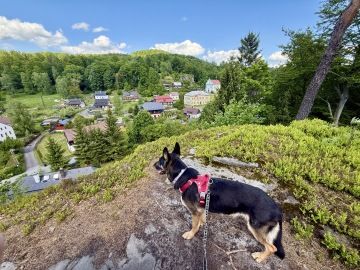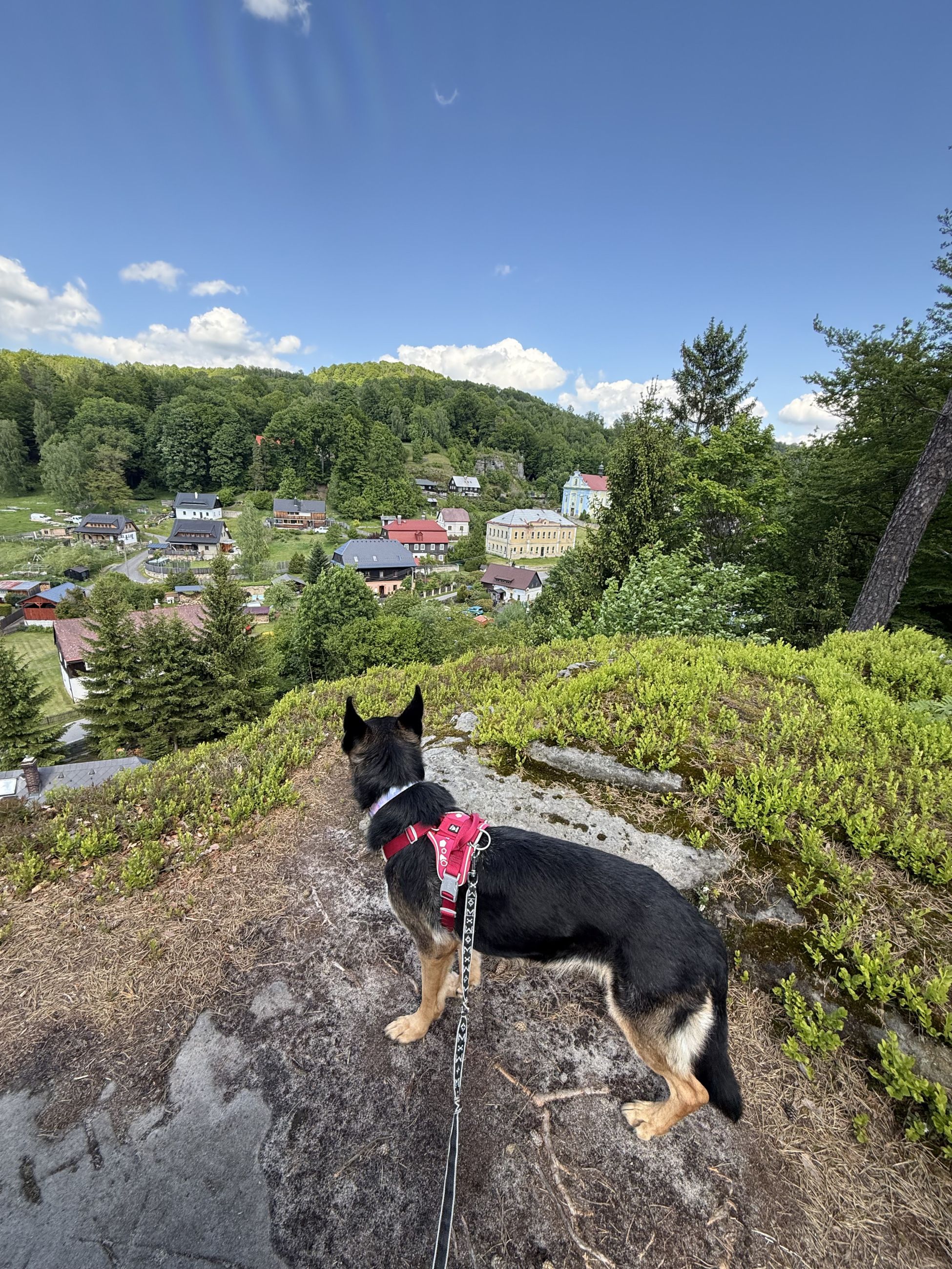 Další cíl naší úžasné dovolené s páníčky. Panská skála není velké místo, ale dá se vyjít až na Varhany a pokochat se krásnými výhledy do okolí. Jako první, jsme se museli podívat na vrchol.