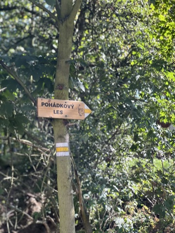My jsme na místo dorazili během slunečního nedělního dopoledne. Auto páníček nechal na místním neplaceném parkovišti. Z parkoviště se můžete rovnou vydat po žluté turistické značce a projít si tak celý okruh. Pro nás starší psí dámy, a navíc pro malé dítě bez kočáru by to ale bylo moc dlouhé. Takže my jsme šli pěkně od konce. 😊