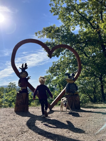 Pohádkový les Bílina byla nakonec jasná volba. Jde o nenáročnou trasu lesem, která je plná pohádkových postav vyřezaných ze dřeva. Navíc se na místě nachází i spousta dřevěných herních prvků pro děti, takže o zábavu pro Ninu postaráno.
