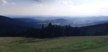 Vydáváme se na další dobrodružství. A že budeme mít co objevovat. Jeli jsme autem až na místo zvané Horní Mísečky. Tam jsme zaparkovali za závorou na parkovišti Horní Mísečky. Nad loukou se táhly nějaké dráty - to bude asi lyžařský vlek.