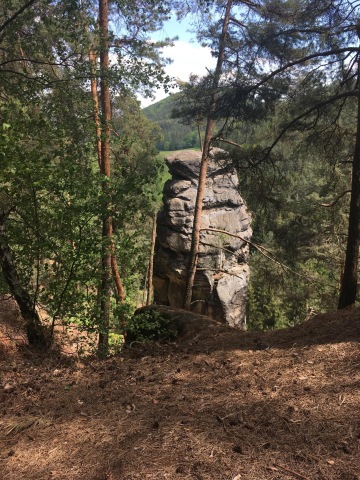 Skalní hrad a poustevna Sloup je umístěn na obrovské skále. Dovnitř je nám pejskům vstup povolen, jen musíme být na vodítku a s náhubkem. Řeknu vám ale, že je to dobře, protože cesta je plná schodů a některá místa jsou pěkně úzká. Tak jsem byl rád, že jsem blízko u páníčka. Nahoře je spousta míst k prohlídce pro mě i pro páníčka. Výhledy, různé lavičky, altánky, dokonce i kostelík. Prohlídku jsme si oba opravdu užili, ale pak už byl čas se vrátit domů.