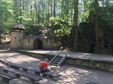 Dnes jsme se ráno vydali na Skalní hrad a poustevnu Sloup. A abychom nešli jen na hrad, na který my pejsci máme vstup povolen, uděláme si i prochajdu v "podhradí".