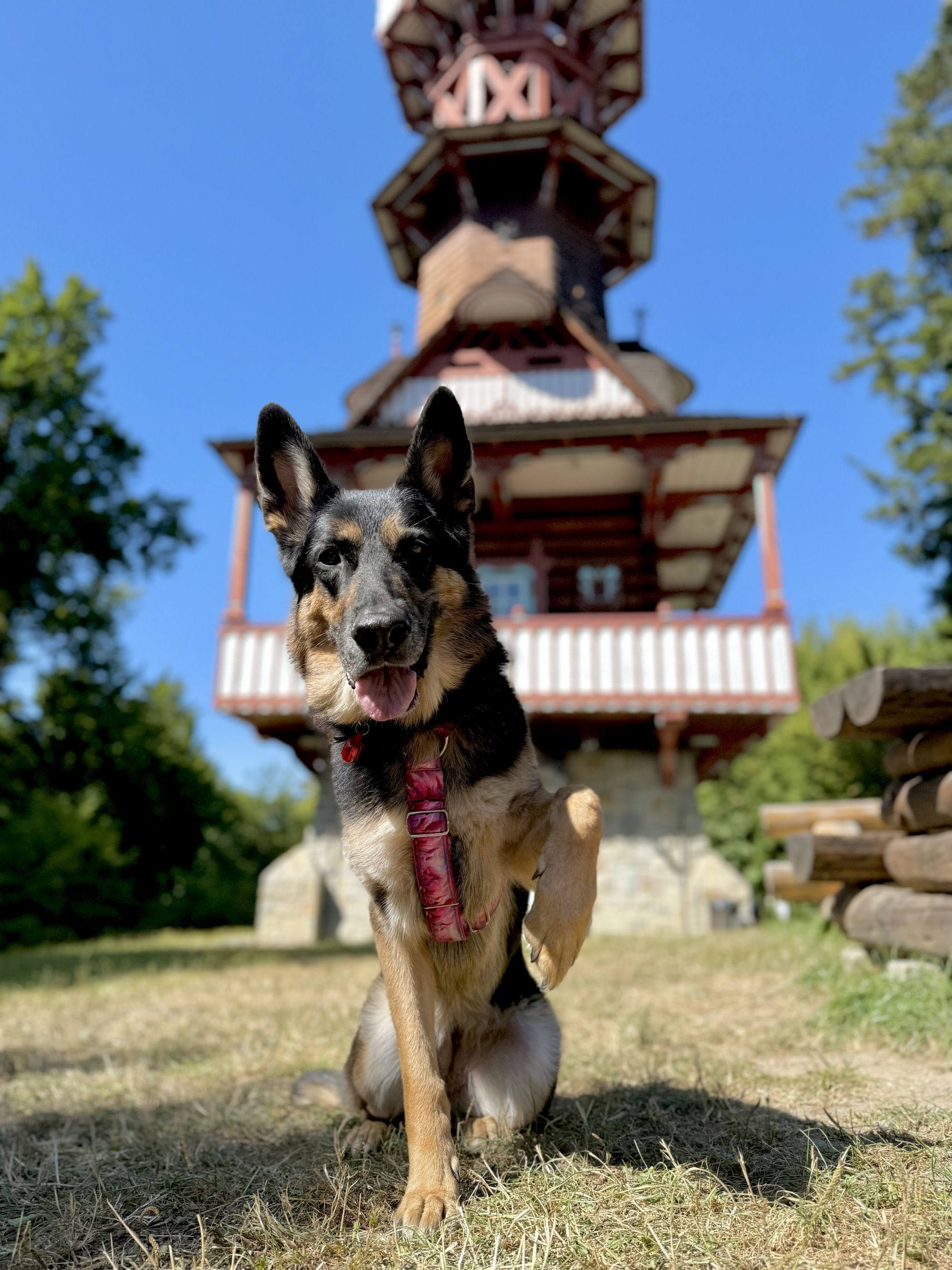 Odtud nás tlapky zavedli na zelenou stezku, vzhůru do oblak... a ještě dál. Na Jurkovičovu rozhlednu, pohon na všechny čtyři tlapky zabral, byl to pěkný kopeček.