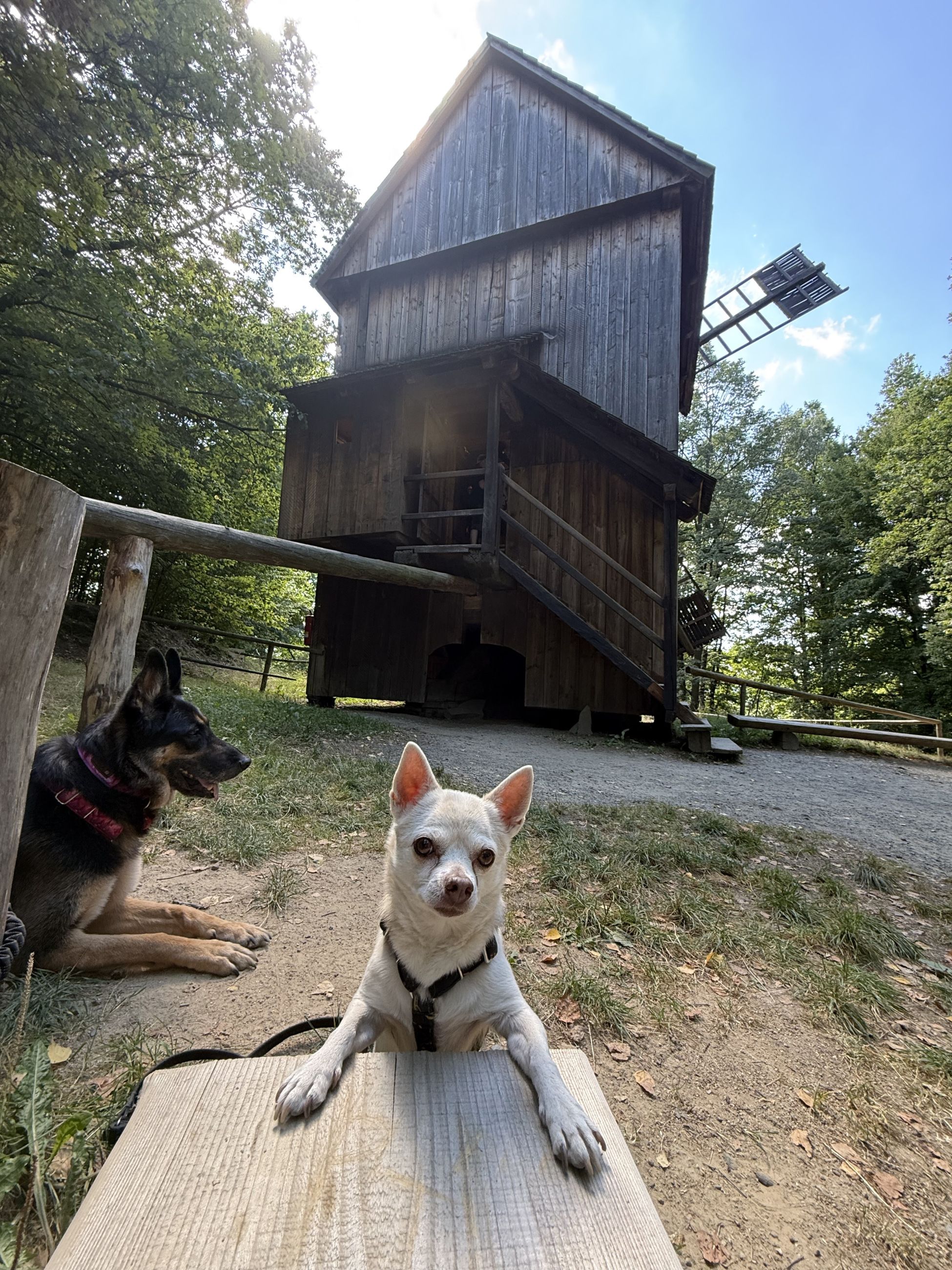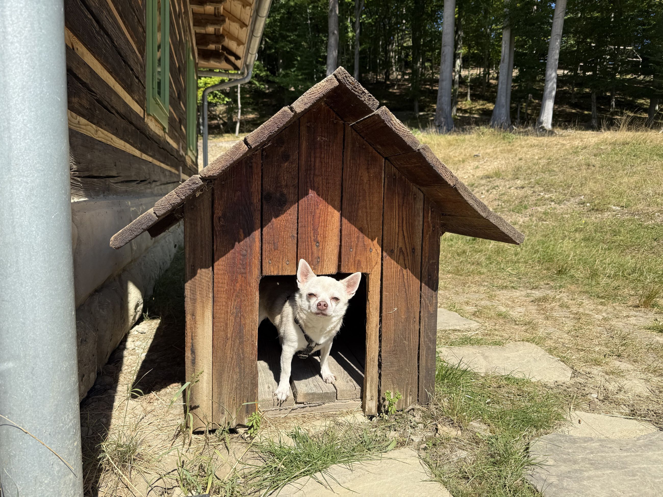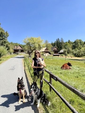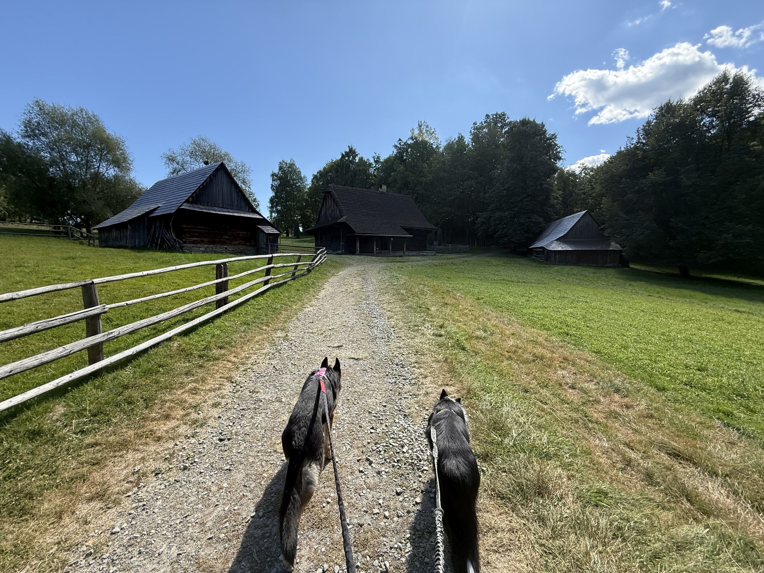 V této dědině jsme strávili hodně času, procházeli jsme chatu za chatou a páníčci se kochali tím, jaké vybavení kdysi bylo. Pro páníčky to bylo moc zajímavé, dědina je totiž hodně rozhlehlá a potkali jsme i zvířátka, jako jsou kachny, kozy nebo krávy a dokonce i osla. Tady jsme zase čmuchali jako o závod, to bylo krásných vůní všude okolo.