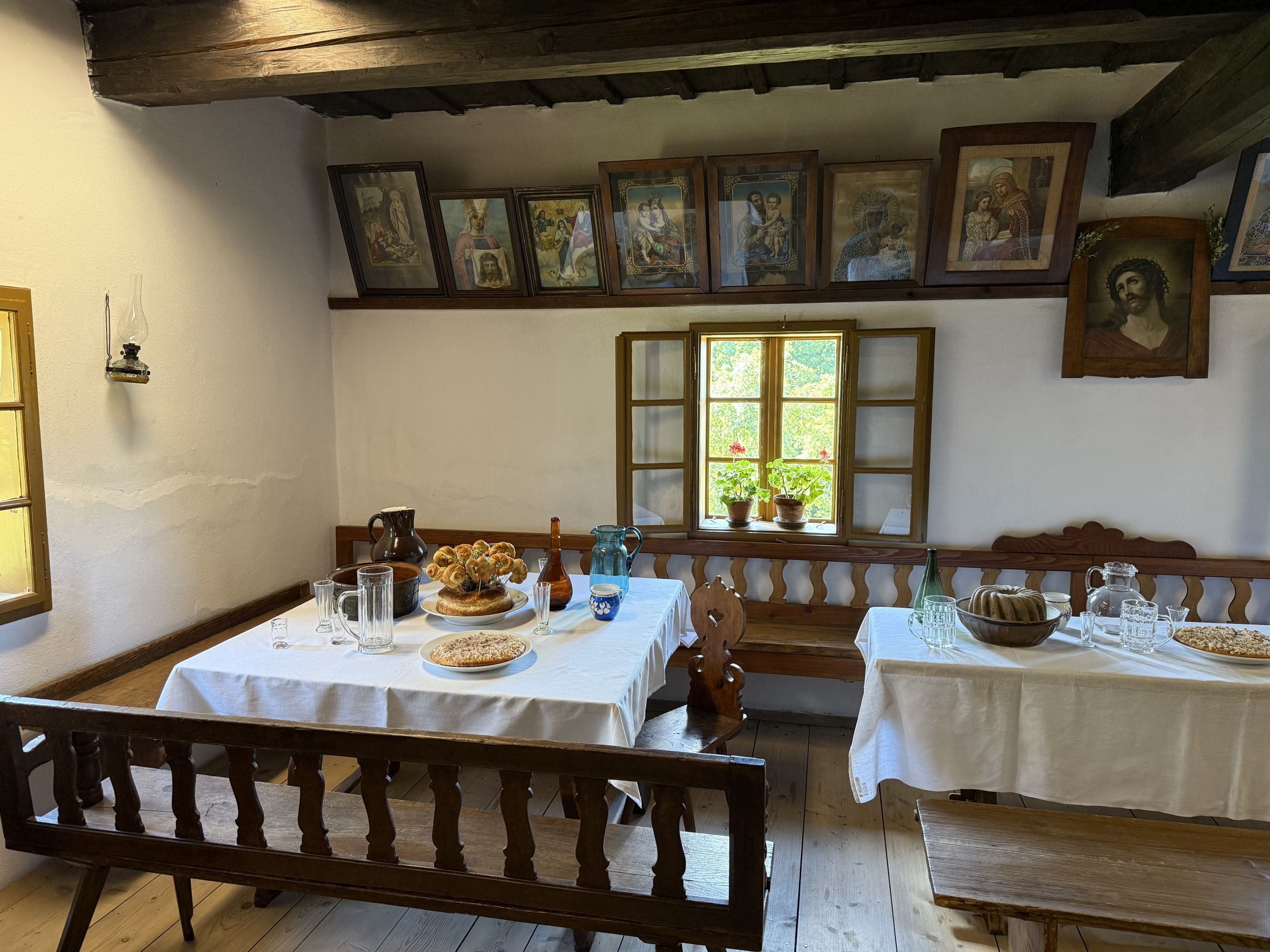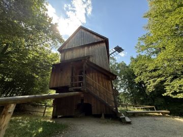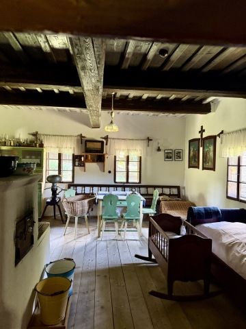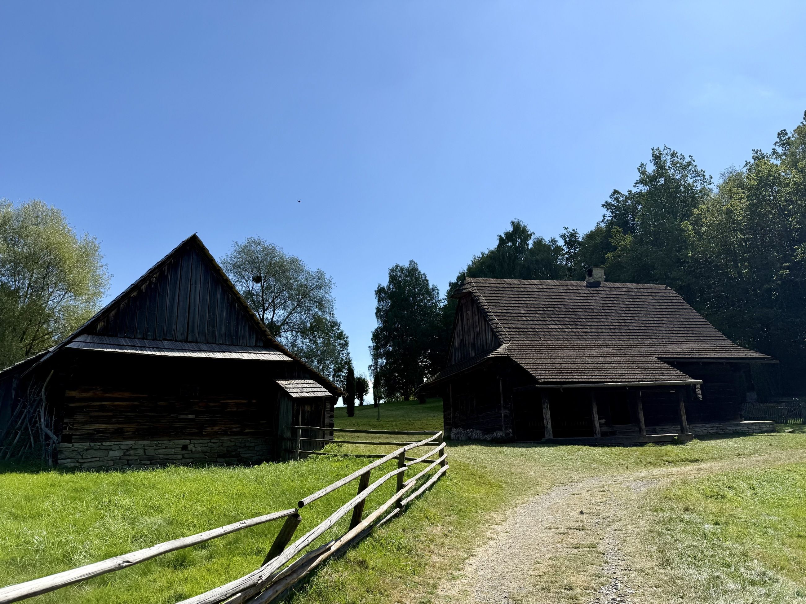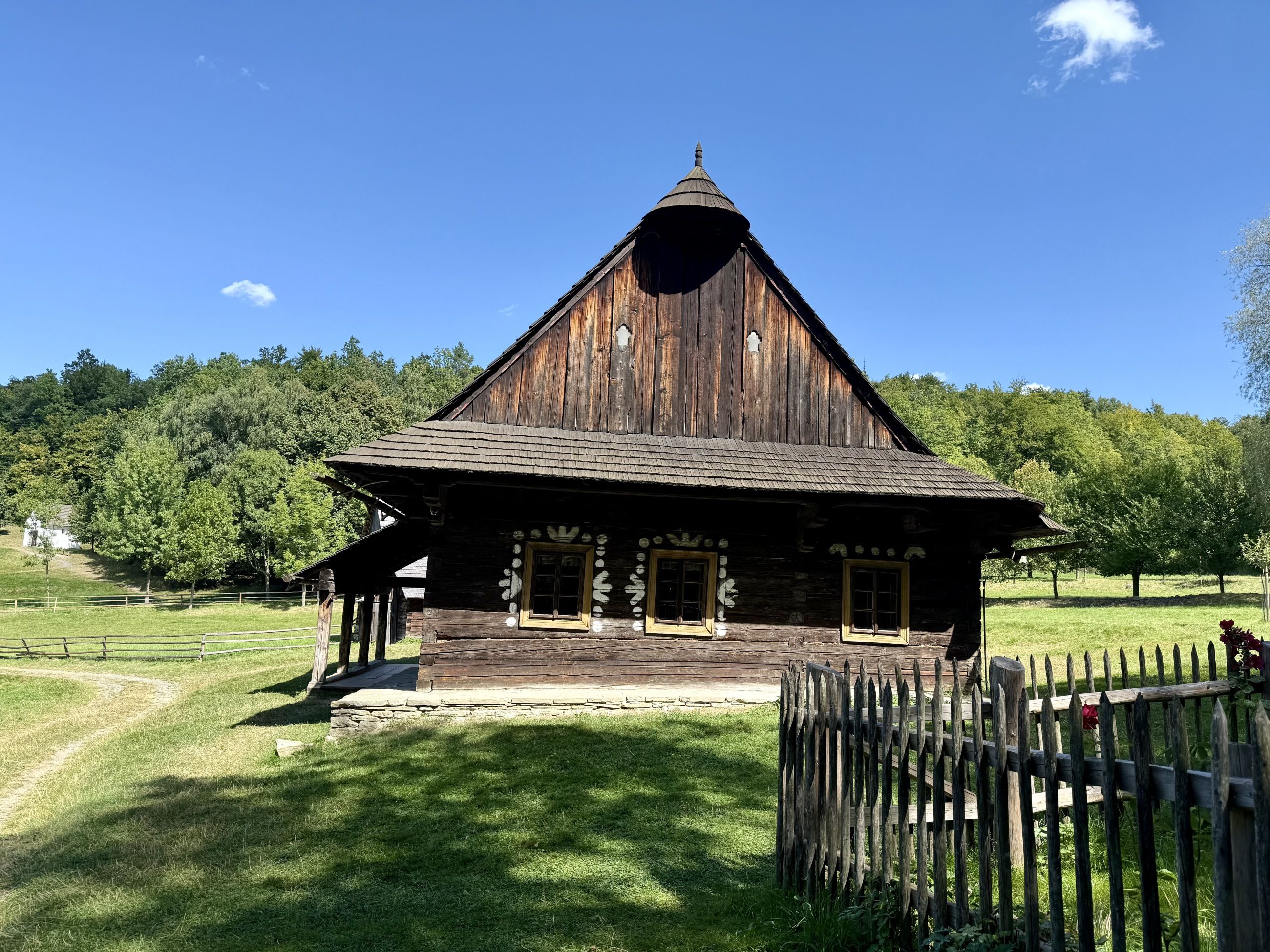 Potkali jsme dvě občerstvení, ale pauzu jsme si neudělali. Bylo tam totiž tolik k vidění a tolik ke čmuchání, že na to nezbyl čas. Můžete se tam podívat na hospodářské usedlosti, salašnické stavby, hospody, větrný mlýn, kovárnu nebo sušírnu ovoce, zvonici i kaple.