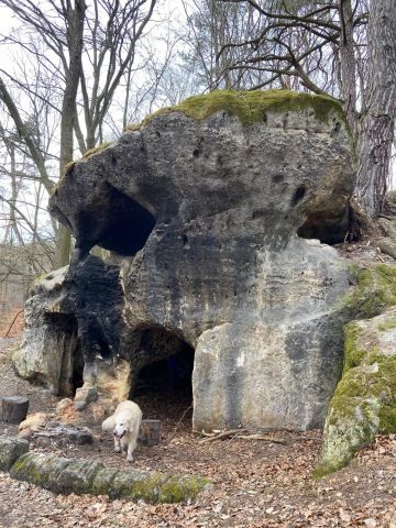 Od domova to nemáme daleko a tak, než v autě zaberu, jsme na místě. Vydáme se po žluté turistické značce směrem na Nedvězí – projdeme mezi domky a začneme stoupat lesem. Cestou míjíme skalní útvary a asi po kilometru dojdeme k samotě Vernerovka, od které je na dohled krásná jeskyně a ta opravdu stojí za to prozkoumat.