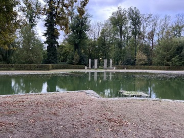 Naštěstí je v parku dost laviček, takže jsme si mohli dát pauzu na svačinu. Panička říkala, že zámek nabízí i piknikové koše, kavárnu a restauraci, ale jak je to tam se psy, nevíme – my jsme si totiž vše přinesli s sebou. Co bylo nejlepší? Areál byl prázdný, nikde nikdo, jen my, klid a podzimní příroda. Prostě dokonalost!
