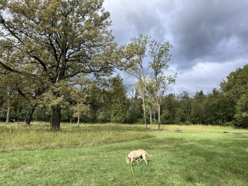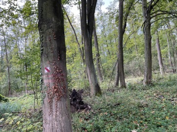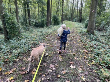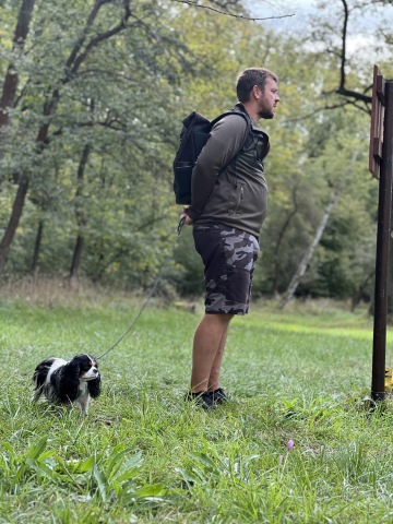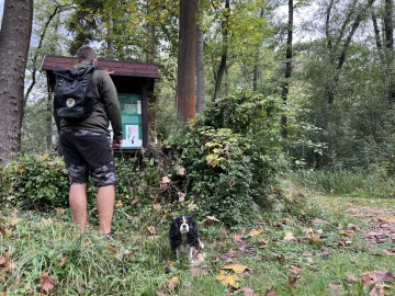 Lesní část parku je skvělá. Jsou tu dva okruhy s vysekanými cestami, poučné tabule a rozlehlé louky plné vzácných kytek. Ninuška měla malý košíček, do kterého sbírala barevné listy a žaludy. My psí holky mezitím hledaly nejvoňavější místa a občas si uždibnuly z pamlsků, co nám panička vzala.