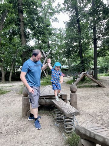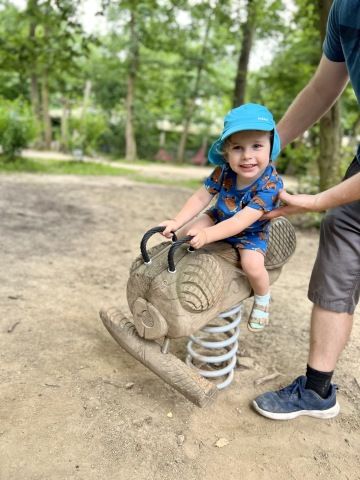 Když jsme si vyťapkali kopec, nahoře se nacházelo krásné hřiště pro malé dvounožce, další občerstvení, velbloudi, ale také dinosauři…No, ty se nehýbali…naštěstí.