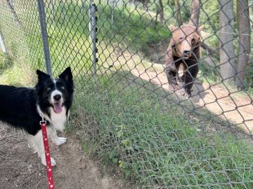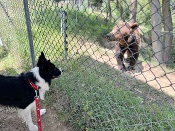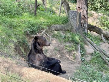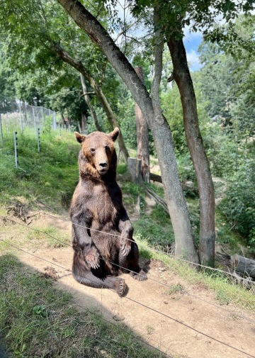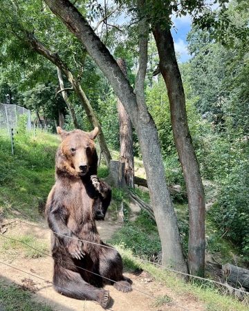 Náš malý dvounožec se nejvíc těšil na medvěda, který tam dělá vždycky psí kusy. Tentokrát tam seděl jak v hospodě u piva a nechával tím na sebe lákat návštěvníky zahrady. Na mě se pak taky přišel podívat.