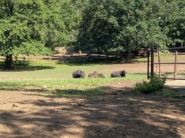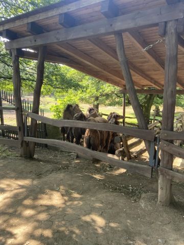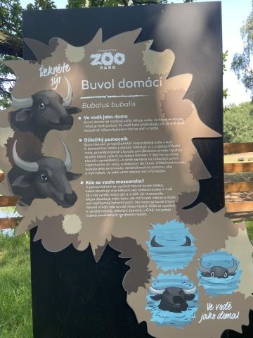Postupně jsme naráželi ale i na ta živá, jako první jsme viděli stádo buvolů a velbloudů. To už jsme ale měli něco nachodíno a přestávali se orientovat. Došli jsme ke statku domácích zvířat, kde jsme u jednoho posezení našli mapku a ujistili se, že jdeme správně a nic jsme nevynechali. V 11 hodin je totiž krmení lachtanů, a to si nikdo z nás nechce nechat ujít.
