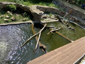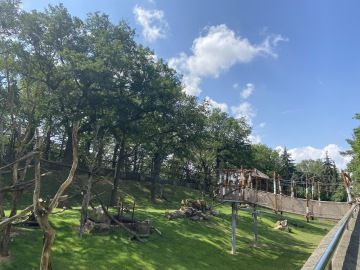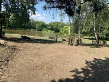 Terén v celé ZOO je nenáročný a cesty jsou udržované a ve skvělém stavu. Místy je spousta stinných míst a potůček, ze kterého jsme se mohly napít a zaslouženě se osvěžit. Jinak jsme narazili jen na jedinou misku s vodou pro psy a ta byla úplně suchá. Ještě, že máme svou vlastní lahev s vodou.
